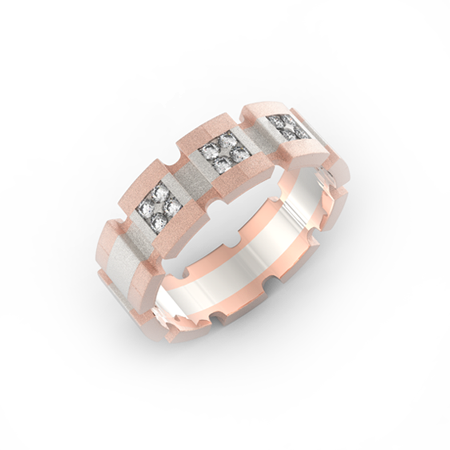 Multitone and MultiColour Ring (7.04 gram) with 12 Round Shape Cubic Zirconia (0.16 ct)