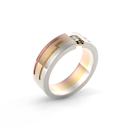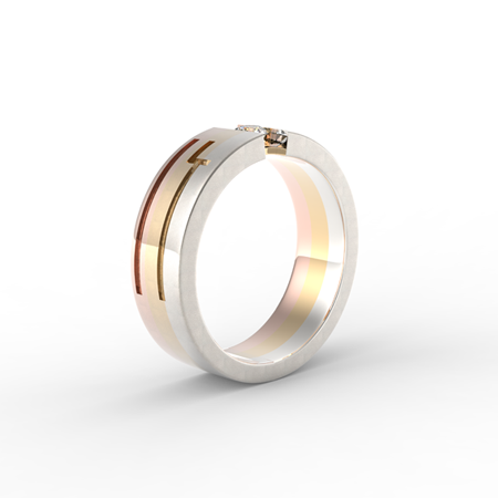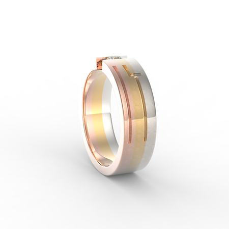 Multitone and MultiColour Ring (11.23 gram) with 1 Round Shape Cubic Zirconia (0.18 ct)